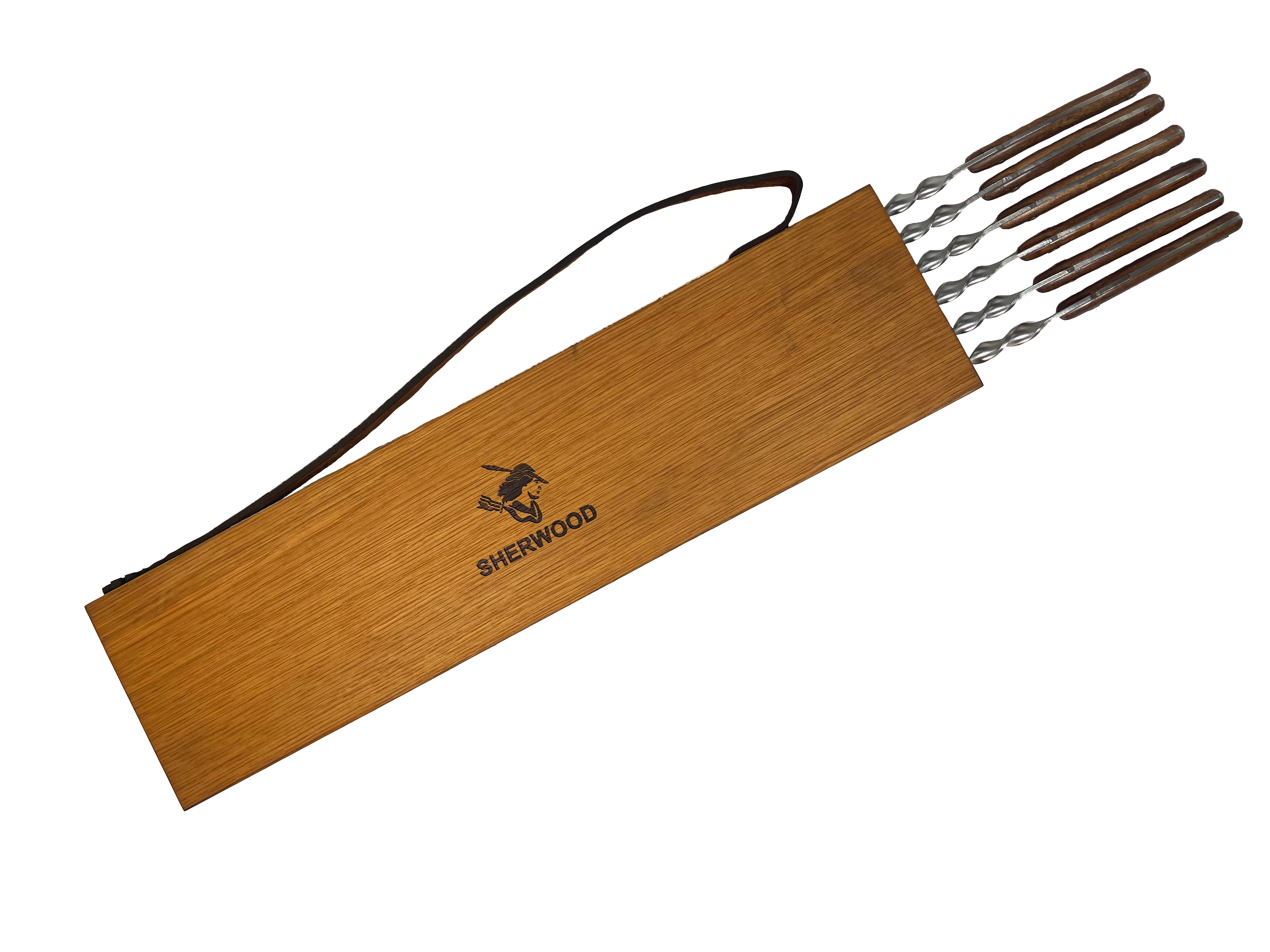 - Отличный подарок: Этот набор шампуров с деревянными ручками станет прекрасным подарком для любого мужчины — будь то коллега, друг или родственник. Подарочный набор шампуров в кейсе "Sherwood" создаст идеальные условия для приготовления вкуснейших блюд на мангале.