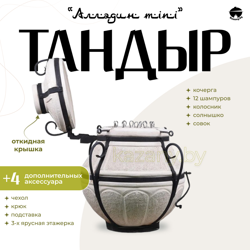 Тандыр Сармат «Алладин мини» изготовлен из шамотной глины, с полным соблюдением технологии. Благодаря толщине стенок 50 мм печь быстро, равномерно прогревается и держит тепло достаточно долго, чтобы вы смогли приготовить не одну порцию шашлыка или лепешек. Используется шамотная глина высокого качества – даже при интенсивной эксплуатации глиняный тандыр не покроется трещинами и не потеряет своих характеристик.