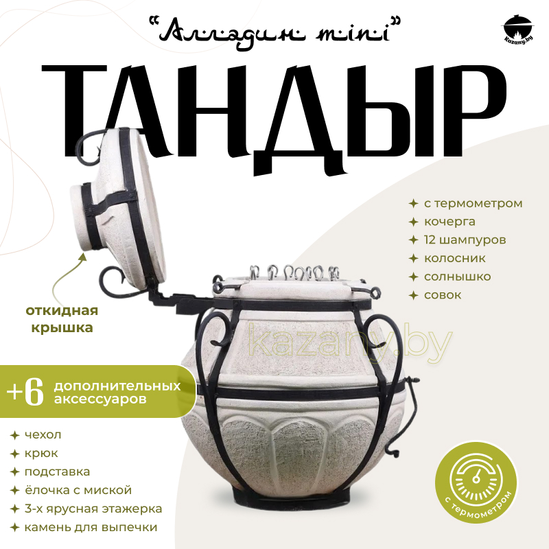 Тандыр Сармат «Алладин мини» изготовлен из шамотной глины, с полным соблюдением технологии. Благодаря толщине стенок 50 мм печь быстро, равномерно прогревается и держит тепло достаточно долго, чтобы вы смогли приготовить не одну порцию шашлыка или лепешек. Используется шамотная глина высокого качества – даже при интенсивной эксплуатации глиняный тандыр не покроется трещинами и не потеряет своих характеристик.