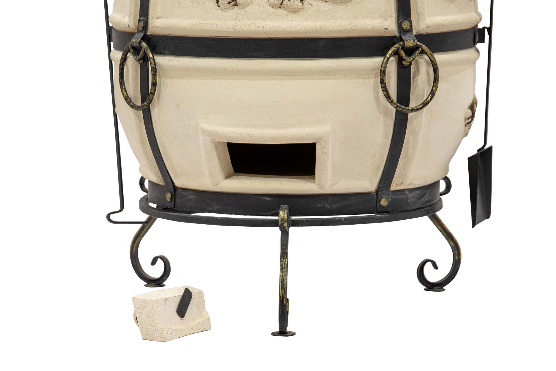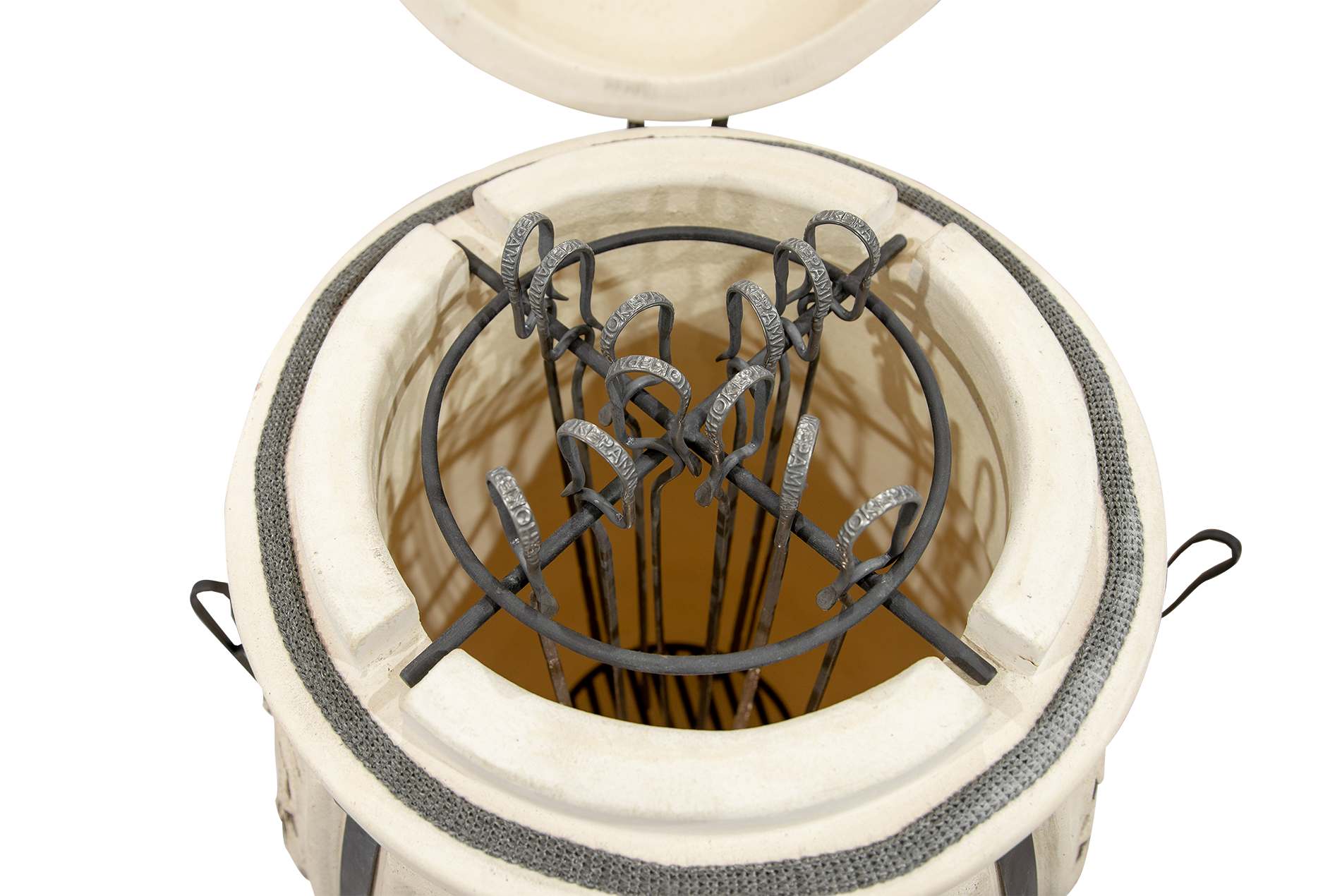 тандыр в сборе (1 шт.), кованая подставка (1 шт.), шампуры из нержавеющей стали (12 шт.), кочерга (1 шт.), совок (1 шт.), устройство для подвешивания (солнышко) (1 шт.), зольная решетка (1 шт.) |
