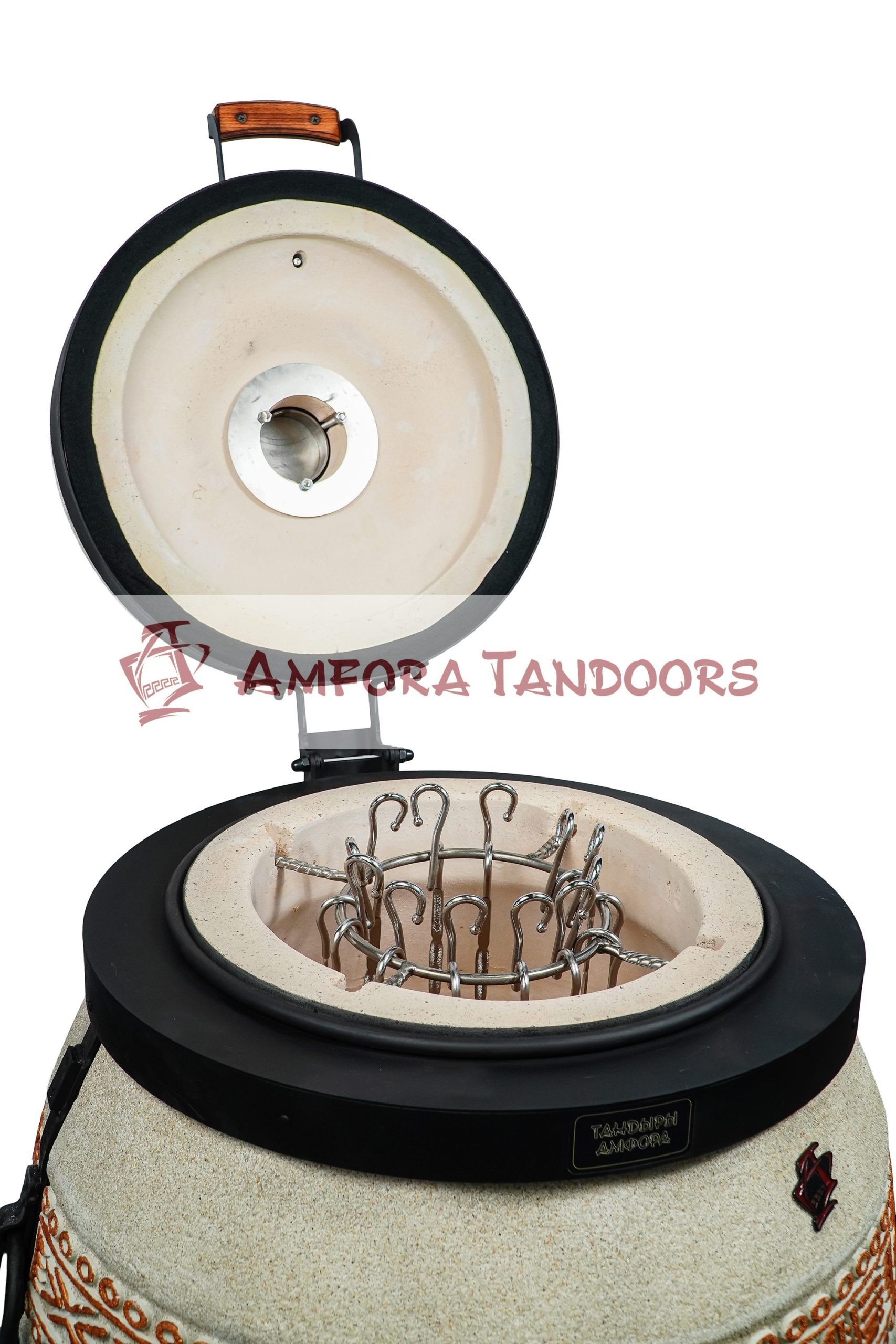 - Корпус выполнен из высокопрочного бетона, устойчивого к резким изменениям температуры и механическим повреждениям. Теплоизоляция дополнительно повышает устойчивость тандыра к износу, продлевая срок службы. Модель оснащена качественной теплоизоляцией, позволяющей поддерживать стабильно высокие температуры на протяжении длительного периода времени (от 6-8 часов). Такой подход помогает значительно сократить расходы на топливо и облегчает процесс приготовления. Особенную ценность данное качество приобретает в осенне-зимний период.