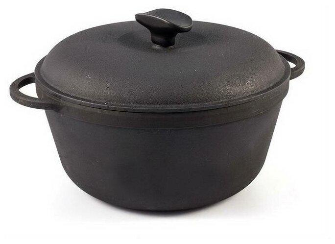 4.    Подходит для любых источников тепла. Купить посуду из чугуна могут владельцы любых видов плит, включая индукционные. Если же модель сковороды или кастрюли не имеет пластиковых ручек, можно использовать её для русской печки, духовки или открытого огня.
