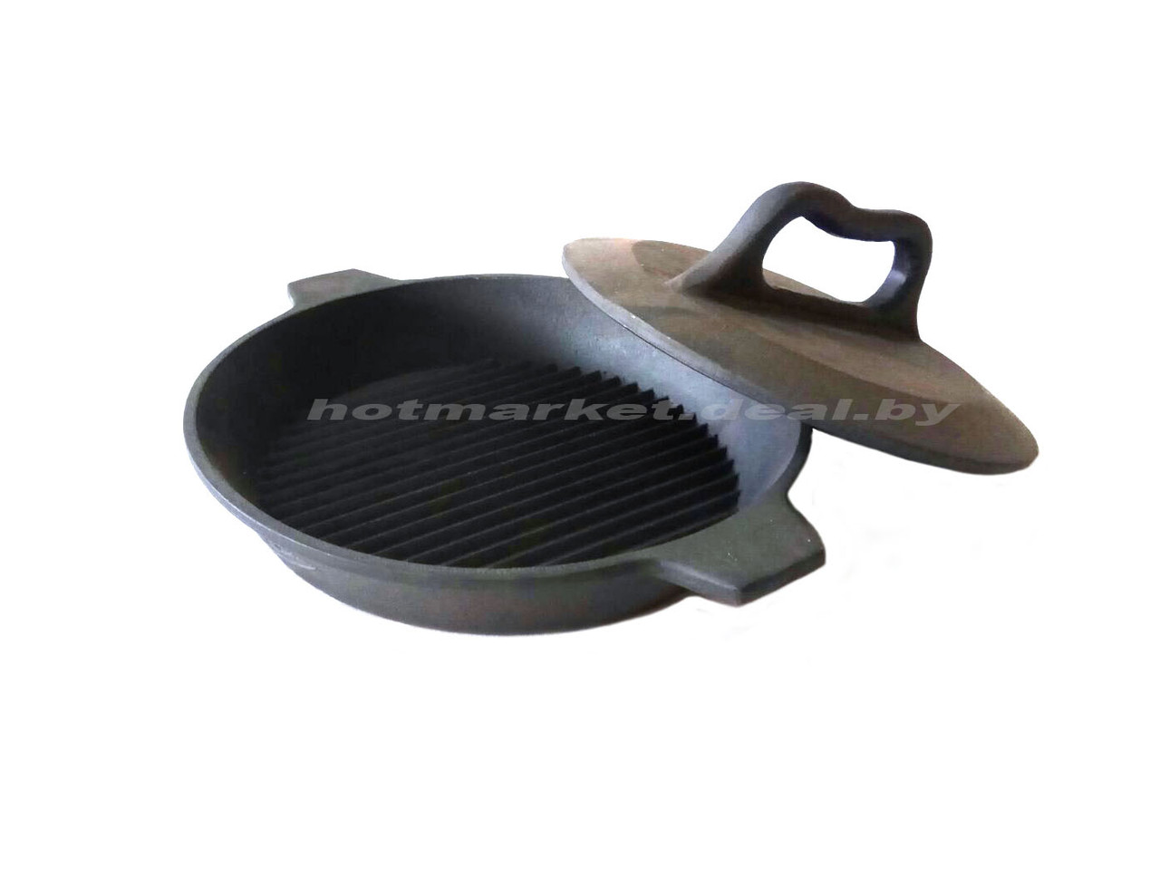 Чугунная сковорода диаметром 290 мм c чугунным прессом и рифленым дном придется по вкусу любой хозяйке и хозяину! Как известно, чугун, обладая высокой теплоемкостью, идеально подходит для длительного приготовления пищи и высокотемпературной обработки. Чугун может нагреваться до экстремально высоких температур, а потом очень долго остывать равномерно отдавая тепло, что позволяет качественно прожаривать любые продукты. Вам не удастся испортить данную сковородку металлическими лопатками, венчиками, абразивными моющими приспособлениями! Можете смело подавать приготовленные в ней блюда прямо за стол, не опасаясь испортить ее металлическими столовыми приборами.