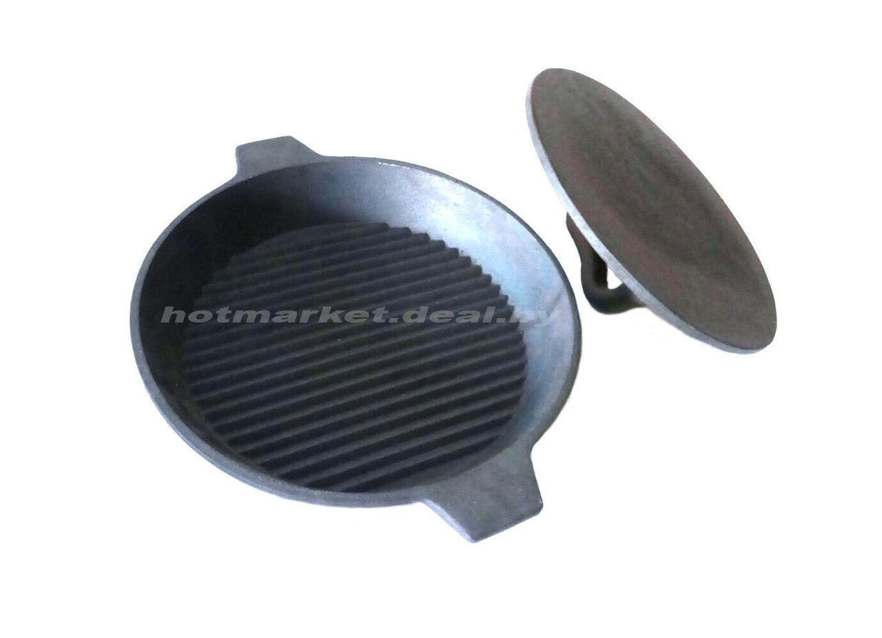 Чугунная сковорода диаметром 250 мм c чугунным прессом и рифленым дном придется по вкусу любой хозяйке и хозяину! Как известно, чугун, обладая высокой теплоемкостью, идеально подходит для длительного приготовления пищи и высокотемпературной обработки. Чугун может нагреваться до экстремально высоких температур, а потом очень долго остывать равномерно отдавая тепло, что позволяет качественно прожаривать любые продукты. Вам не удастся испортить данную сковородку металлическими лопатками, венчиками, абразивными моющими приспособлениями! Можете смело подавать приготовленные в ней блюда прямо за стол, не опасаясь испортить ее металлическими столовыми приборами.