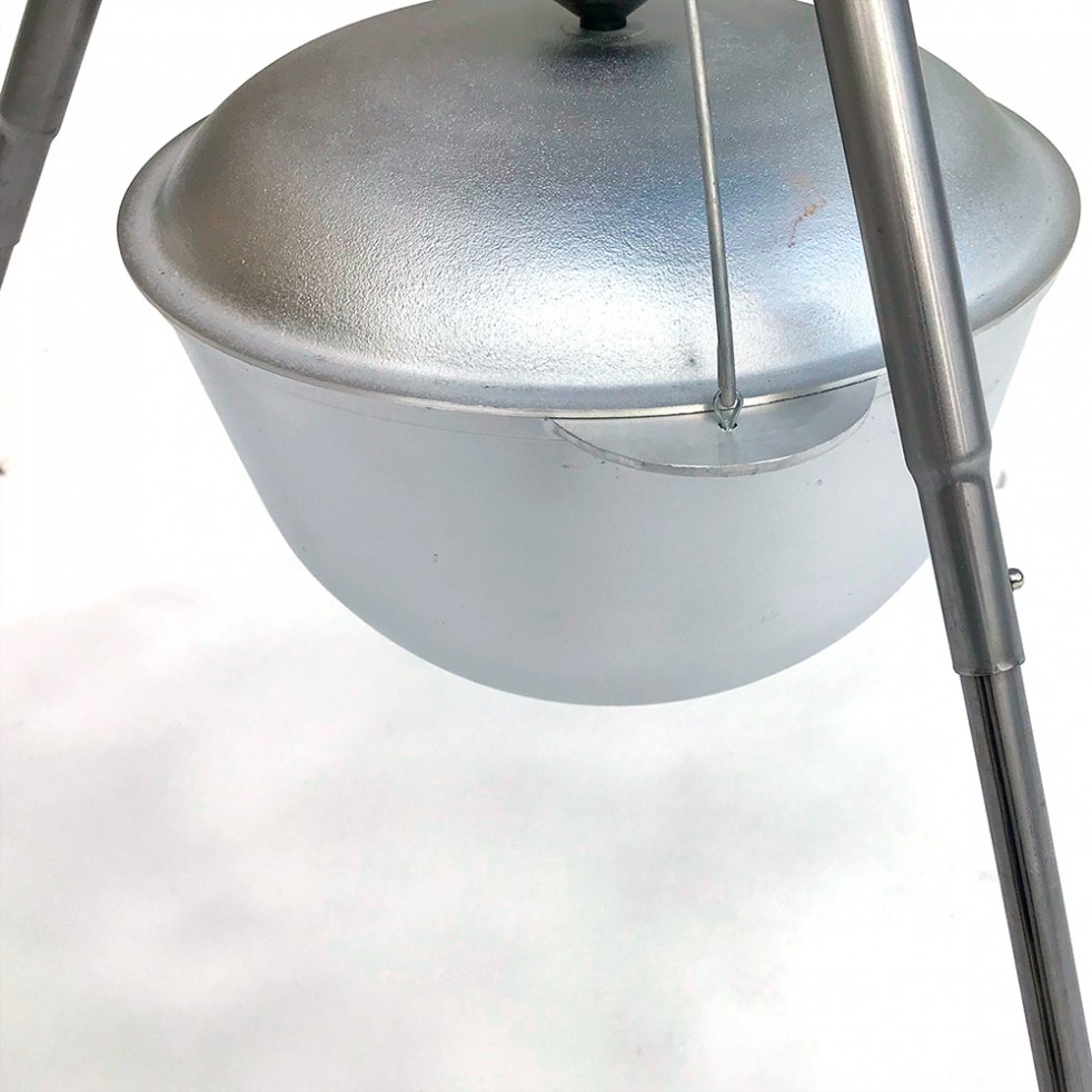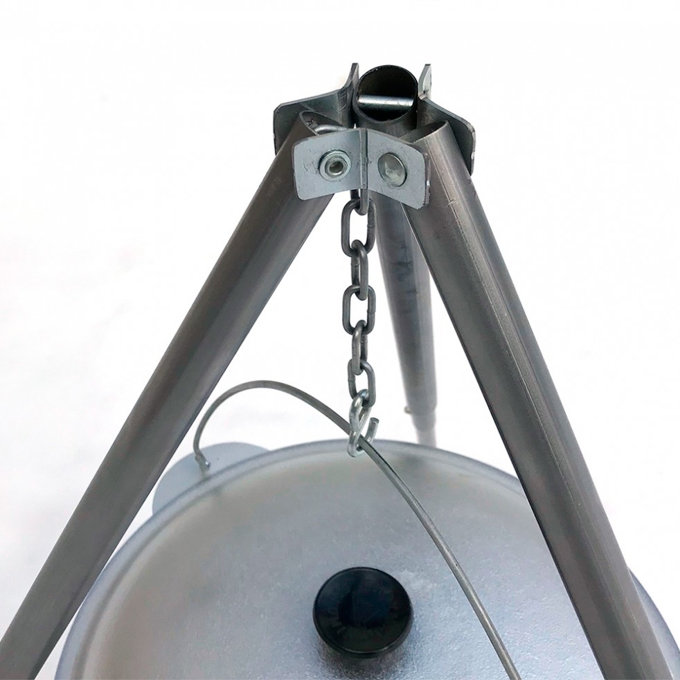 Тренога для приготовления пищи на костре, имеет удобный S-образный крючок на цепи длиной 20 см. Поставляется в плотном чехле.