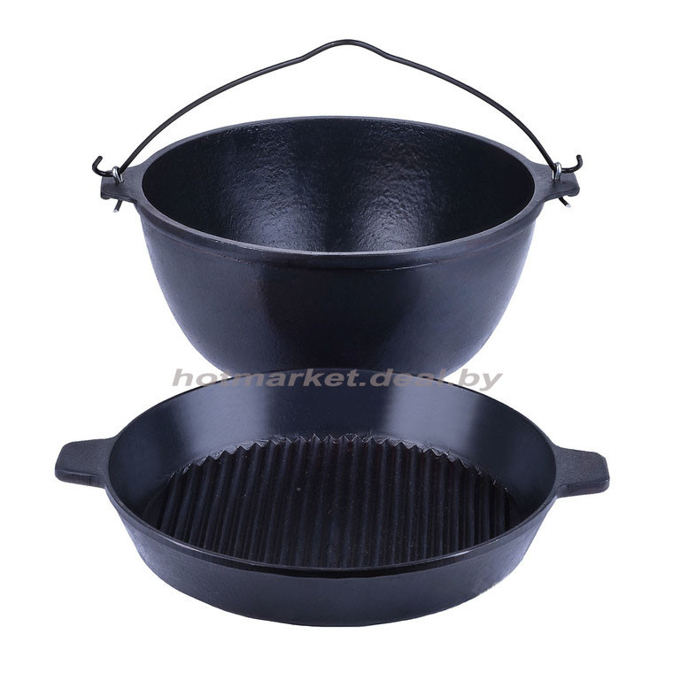 Казан чугунный 6л с крышкой сковородой гриль диам. 290 мм, своей практичностью и универсальностью порадует как мужчин, так и женщин!