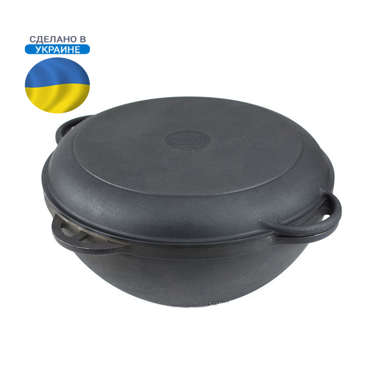 Чугунный казан азиатский без покрытия со специальной термической обработкой производства НПП "Ситон", Украина, объемом 6 литров предназначен для приготовления жареных и тушеных блюд на открытом огне.