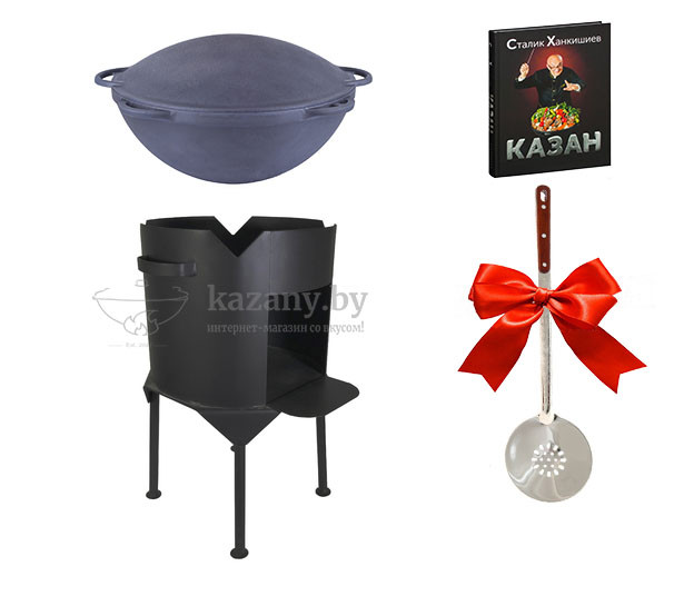 В комлекте с казаном - печь усиленная с дверцей, сталь 3мм. Ножки съемные, что делает печь гораздо более практичной и легко транспортируемой. Наличие разрезов в верхней части печки обеспечивает хорошую циркуляцию воздуха и отличный равномерный прогрев казана.