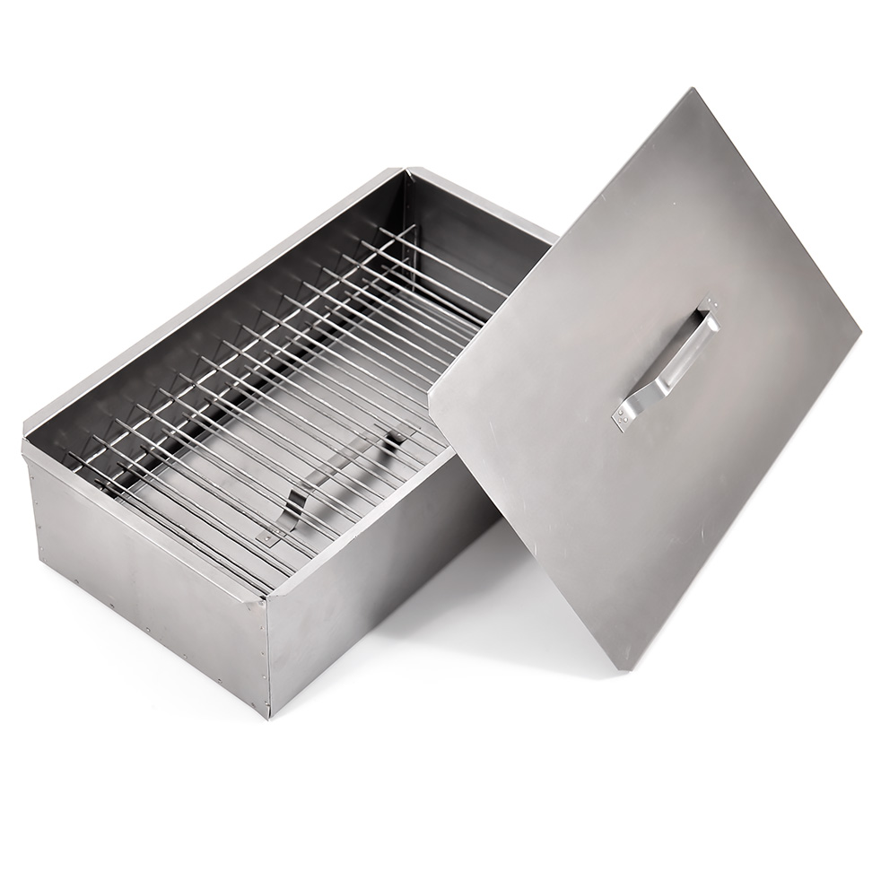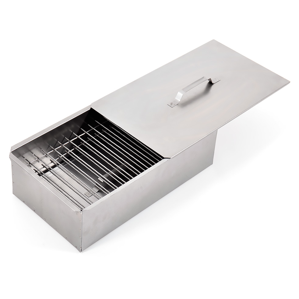 Коптильня оснащена поддоном для сбора жира, чтобы он не капал на древесную щепу. Слайдерный замок коптильни удобно и герметично закрывает корпус, обеспечивая оптимальные условия для копчения. Использовать коптильню очень просто: насыпьте на дно коптильни немного мелкой древесной щепы или стружки (желательно таких пород, как яблоня, вишня, груша, ольха, дуб) накройте щепу поддоном для сбора жира установите решетки и на них уложите продукты закройте слайдерную крышку установите коптильню на мангал с открытым огнем через 25-90 мин (в зависимости от продукта) у вас готовое блюдо горячего копчения, для приготовления которого не требуется особых навыков и умений