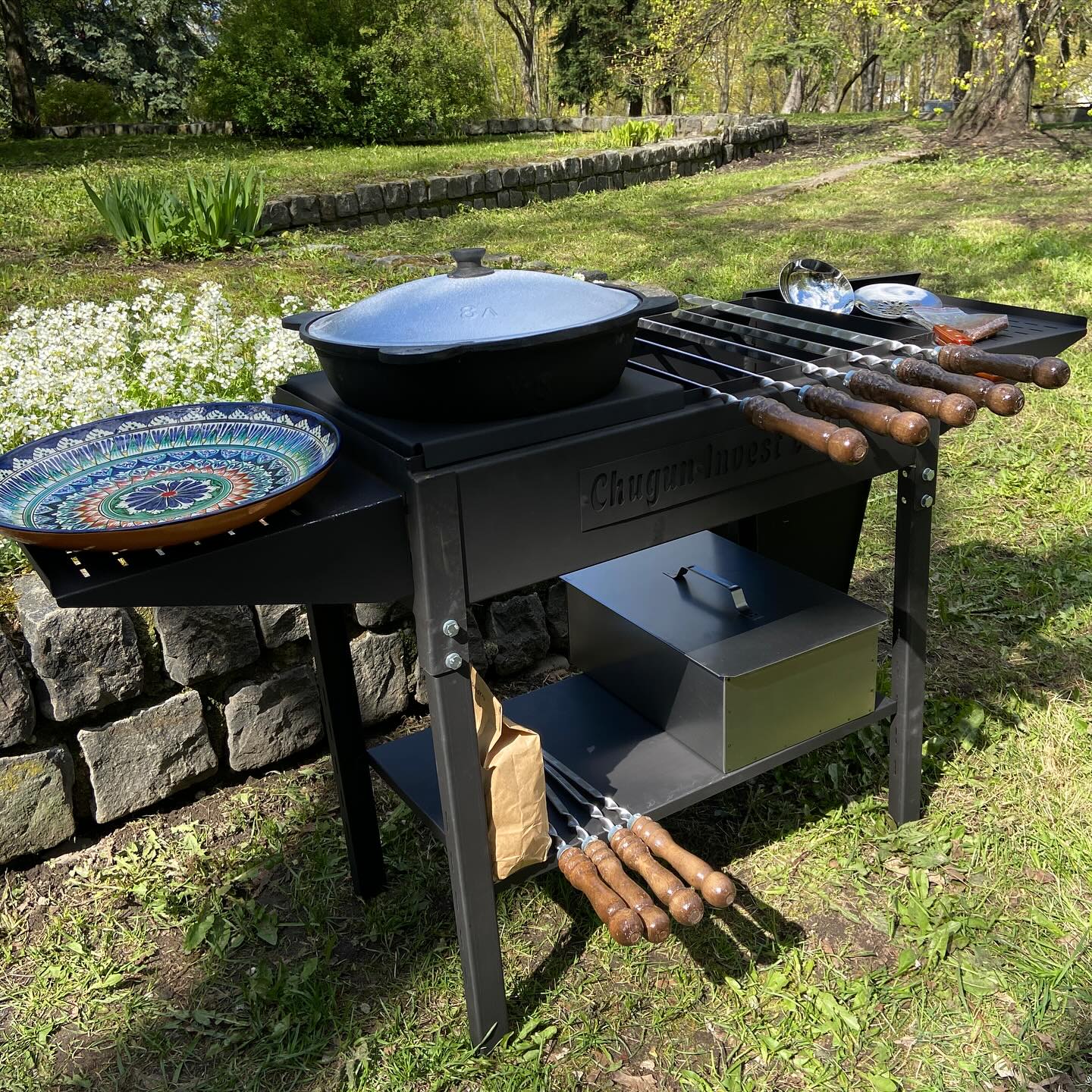- Мангал 700х350х190 мм с удобными боковыми столиками, крышкой и полкой для аксессуаров
