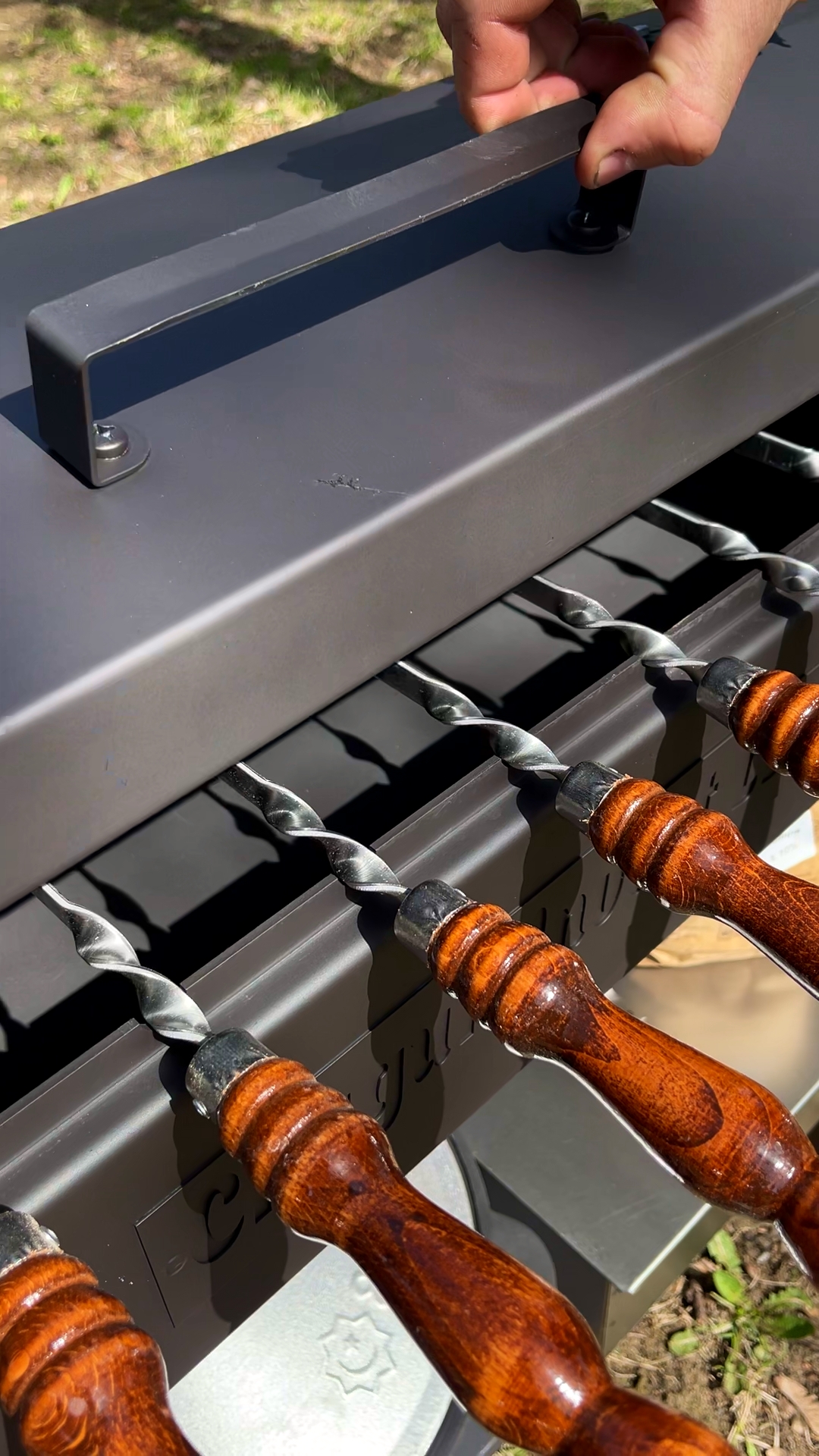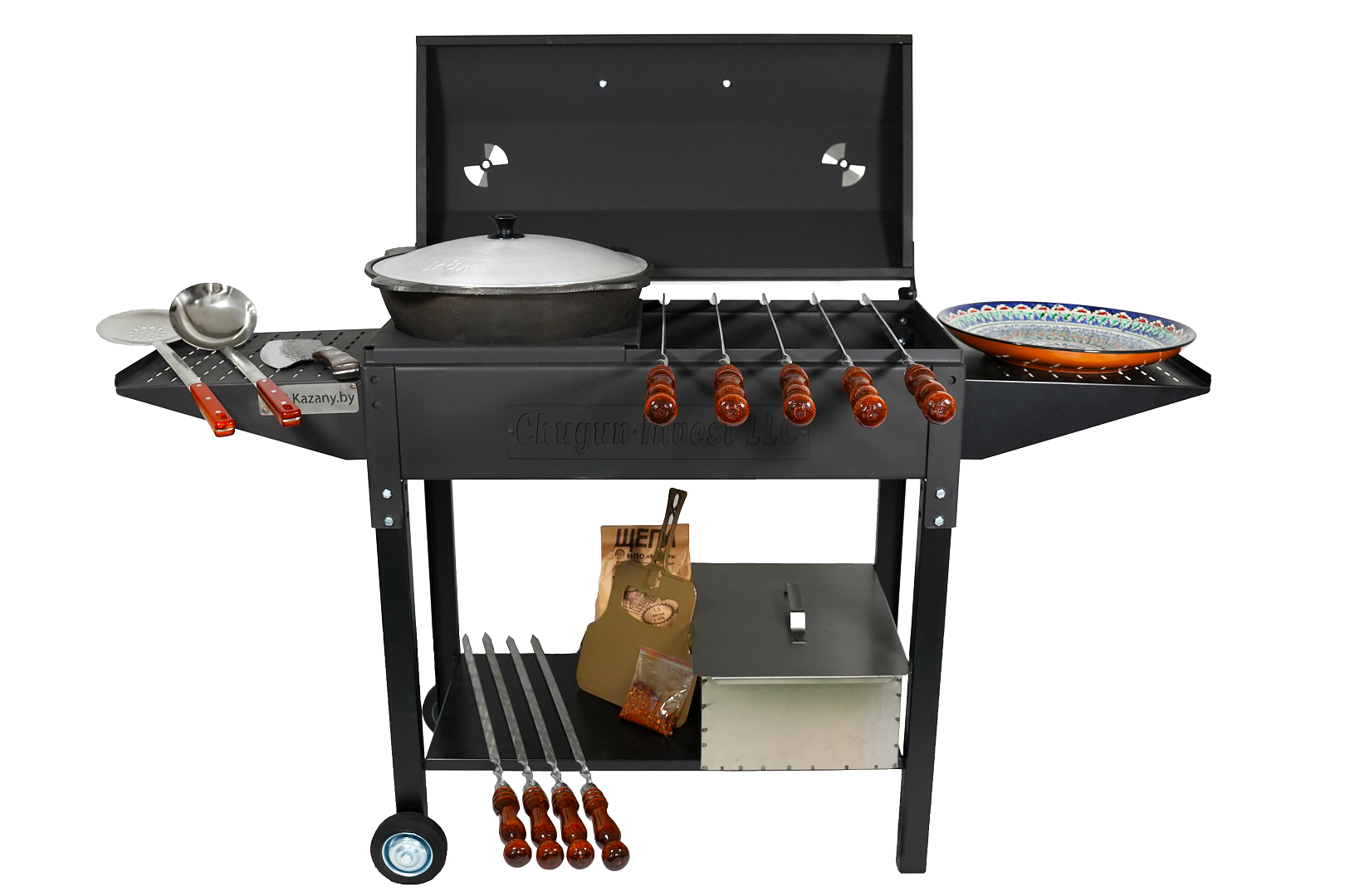 - Мангал с крышкой Барбекю с удобными боковыми столиками, крышкой-барбекю и полкой для аксессуаров