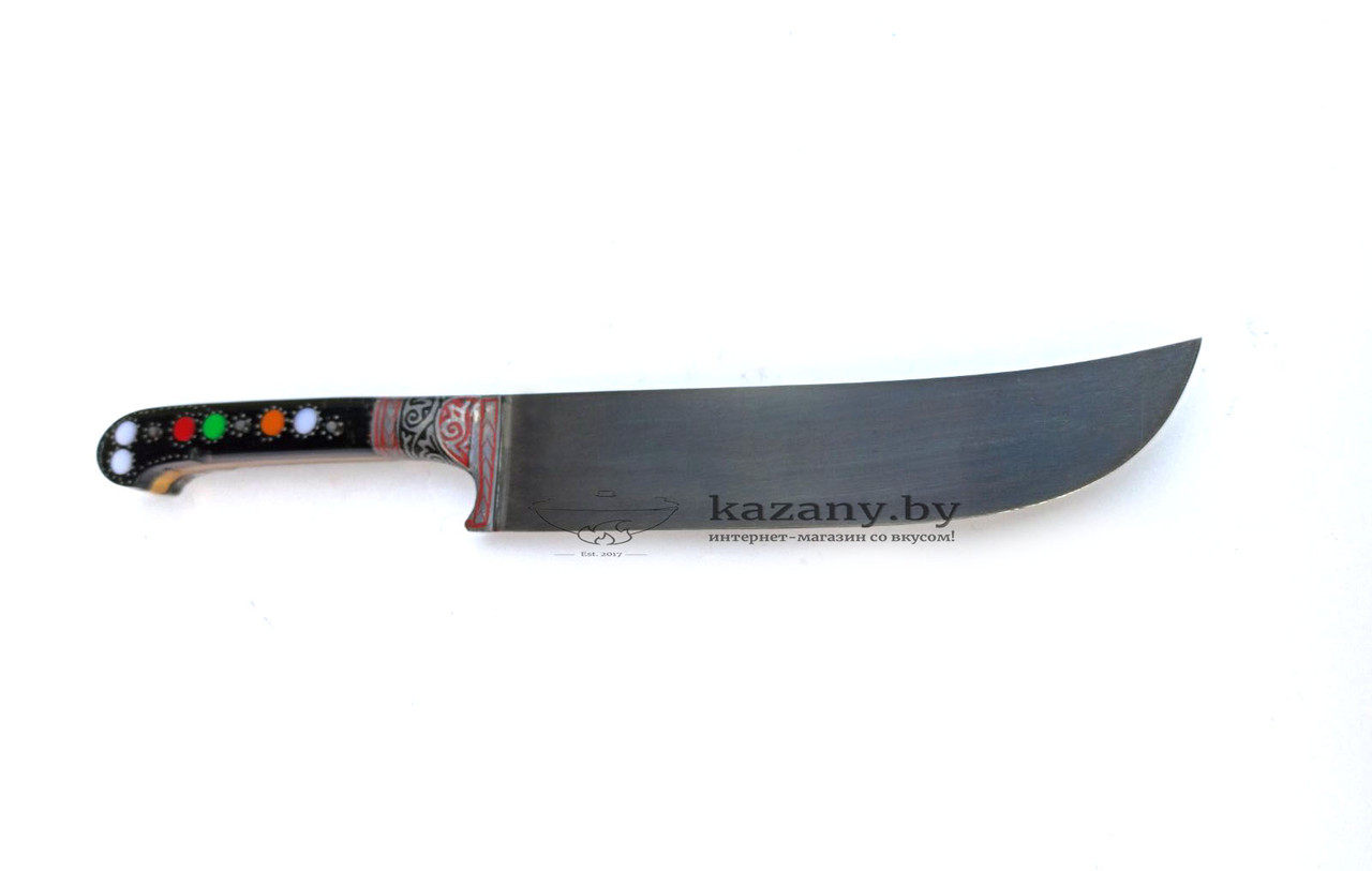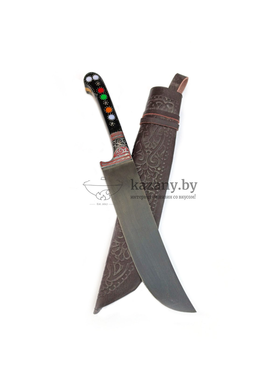 Данная модель узбекского пчака отличается оригинальной и красивой рукоятью, на гарде имеется гравировка. Если Вы решите купить узбекский пчак, можете быть уверенным, что такой нож будет только у Вас!