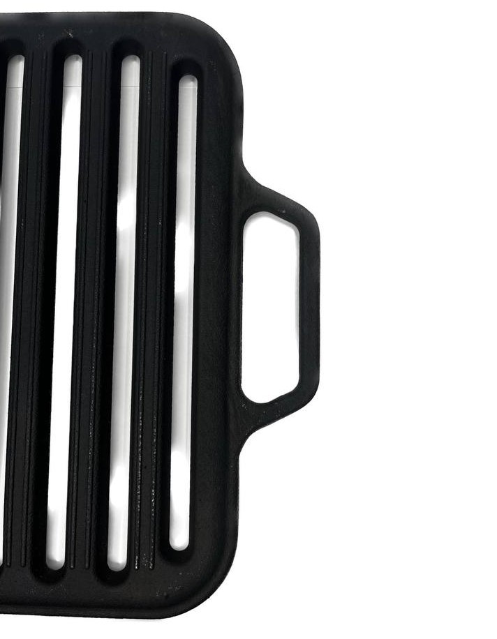 Размеры решетки позволяют одновременно разместить на ней ингредиенты сразу для нескольких блюд или несколько порций на большую компанию. Чугун обладает высокой теплоёмкостью, что способствует равномерному прожариванию продуктов. Также решетка гриль имеет естестенное анти-пригарное покрытие, что значительно упростит процесс приготовления пищи. Кроме того, данное изделие не имеет ограничений по сроку службы.