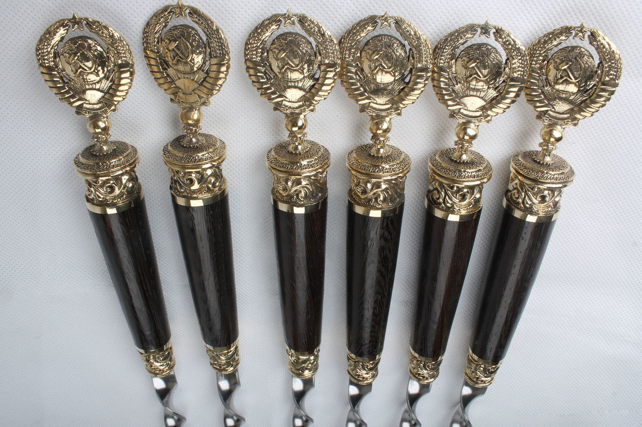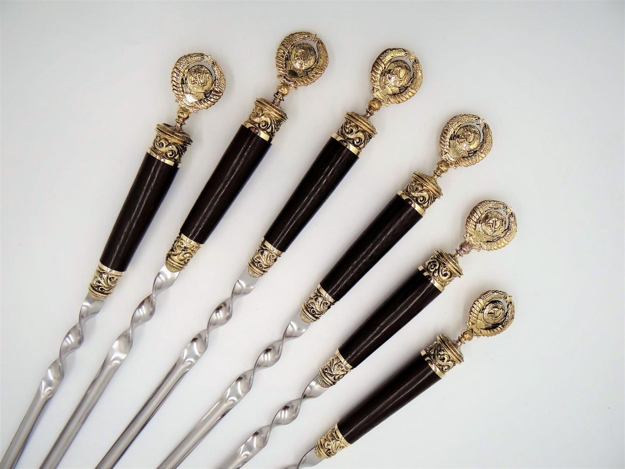 Набор шампуров с гербом СССР, очень красивые шампура красивый герб ручка венге все отполировано смотрится достойно и возвышено, для любителей кто родился в СССР воспоминание о прошлом.