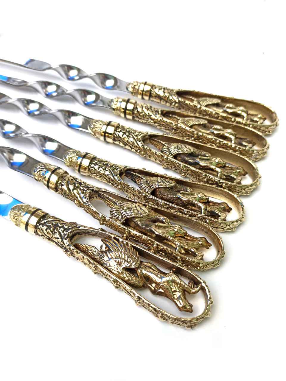 Подарочные шампуры с деревянной ручкой ручной работы: Соколиная охота.