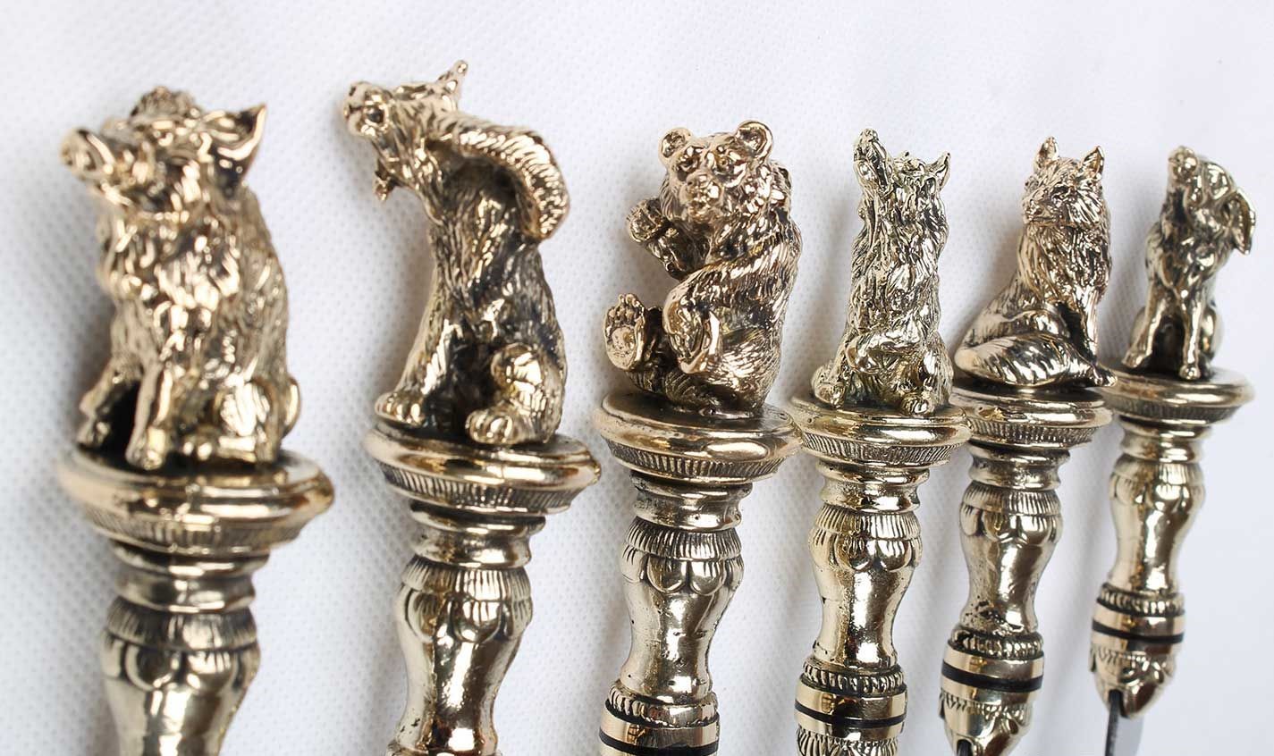 Подарочные шампуры с литой ручкой ручной работы: Лесная братва.