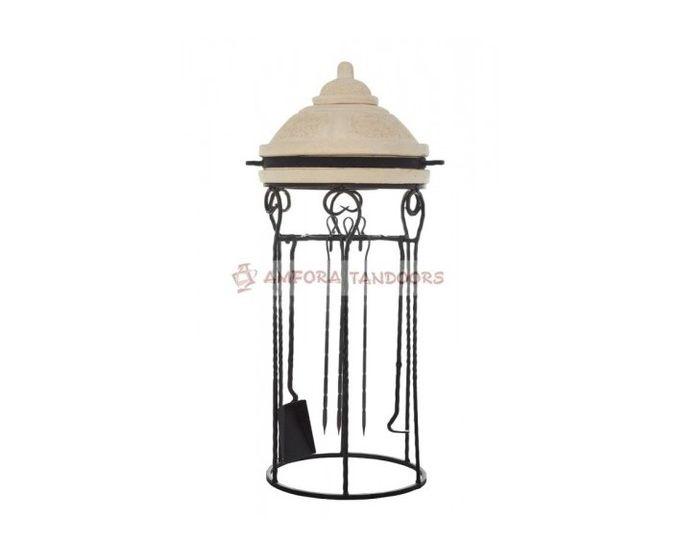 Стойка-подставка под крышку предназначена специально для размещения крышки тандыра, а также аксессуаров для работы с печью. Приспособление облегчает процесс приготовления еды в печи и делает его максимально гигиеничным. Все принадлежности распределяются таким образом, чтобы контактировать только с чистыми поверхностями.