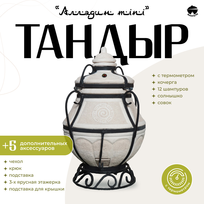 Тандыр Сармат «Алладин мини» изготовлен из шамотной глины, с полным соблюдением технологии. Благодаря толщине стенок 50 мм печь быстро, равномерно прогревается и держит тепло достаточно долго, чтобы вы смогли приготовить не одну порцию шашлыка или лепешек. Используется шамотная глина высокого качества – даже при интенсивной эксплуатации глиняный тандыр не покроется трещинами и не потеряет своих характеристик.