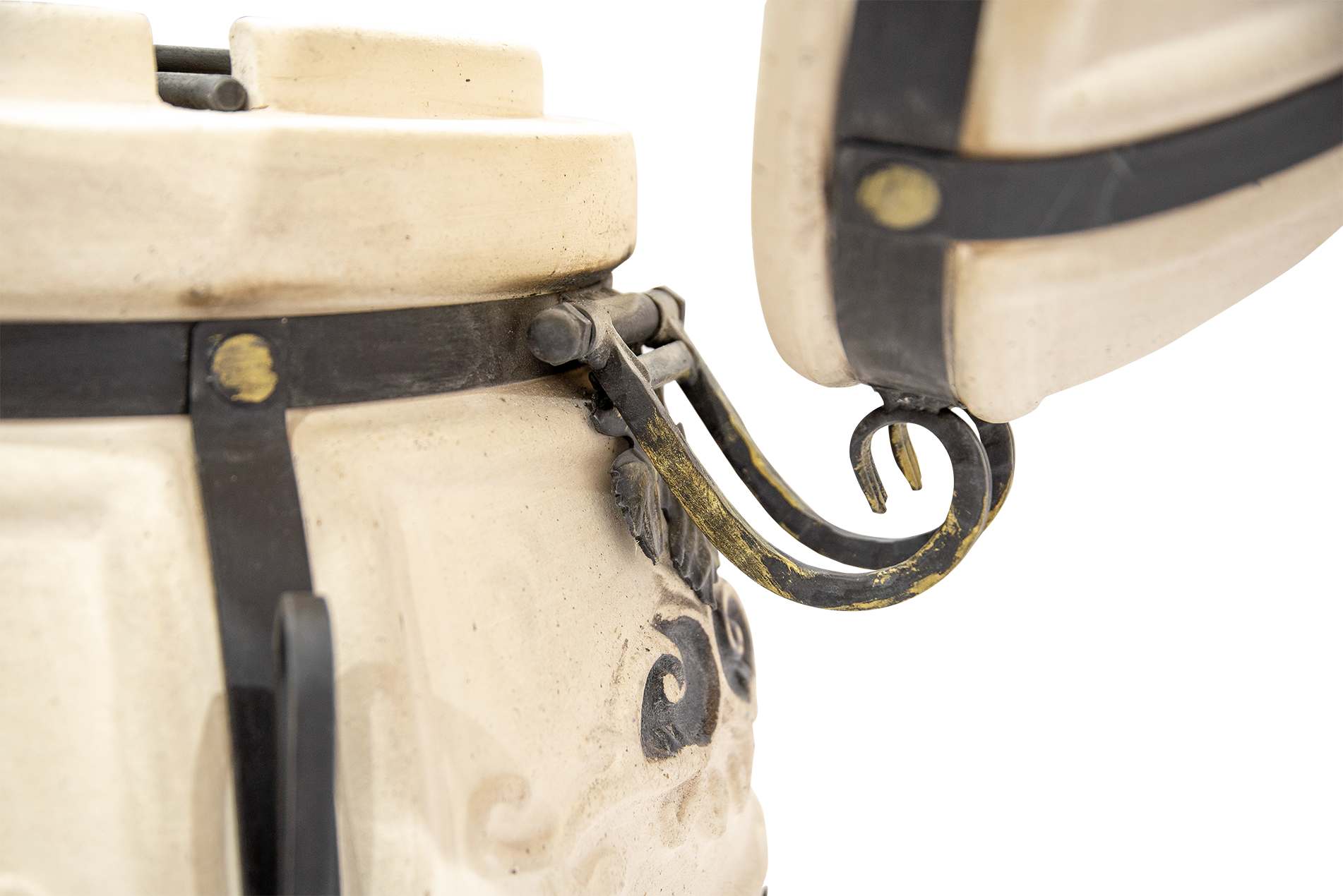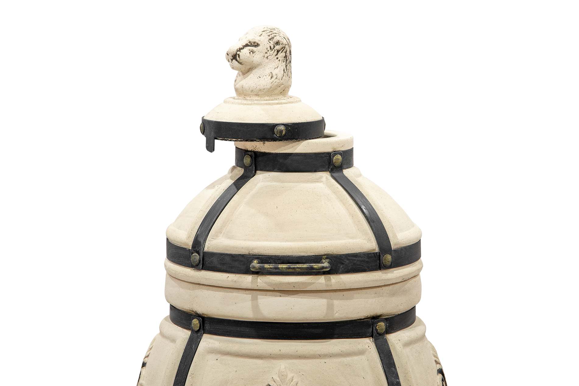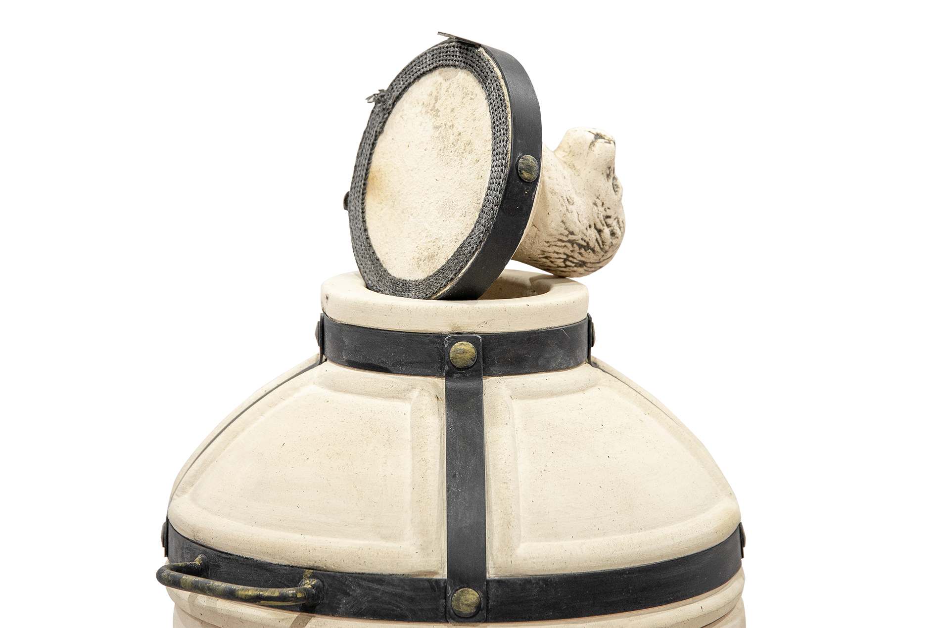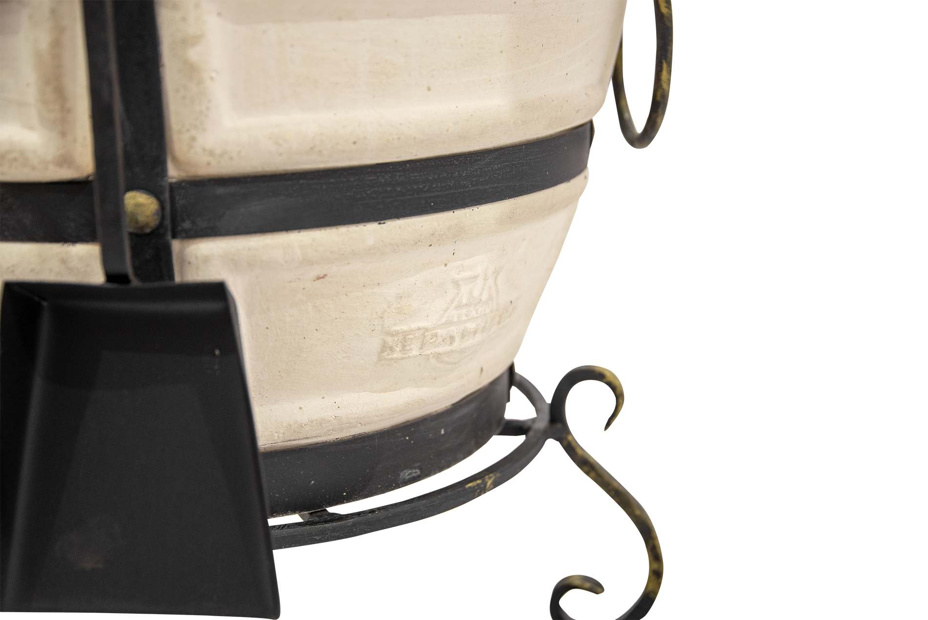 Тандыр выполнен в классическом светлом цвете с декоративными элементами в виде рельефных узоров, что придает ему изысканный и уникальный вид. Кованая подставка обеспечивает устойчивость и придает дополнительный стиль вашему участку.