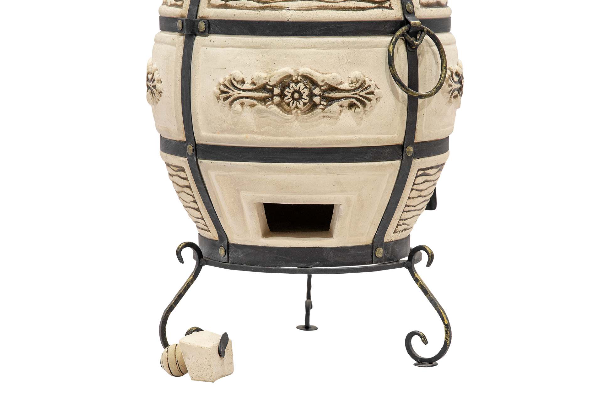 тандыр в сборе (1 шт.), шампуры из нержавеющей стали (10 шт.) , кочерга (1 шт.), совок (1 шт.), зольная решетка (1 шт.), устройство для подвешивания (1 шт.), кованая подставка (1 шт.) |