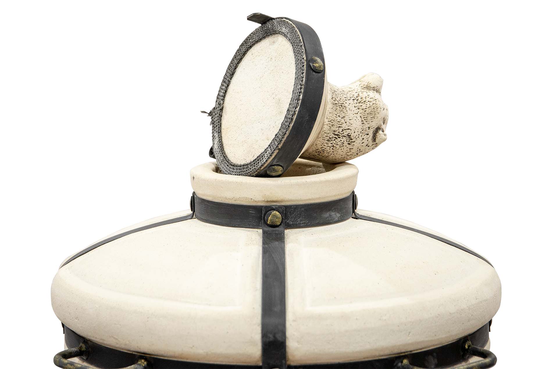 Тандыр Казачий выполнен в виде массивного бочонка с плавными линиями и имеет крышки двух уровней. Верхняя крышка-колпачок помогает удерживать тепло при открывании тандыра, а основная откидная крышка с удобными ручками облегчает доступ к продуктам. Массивная кованая подставка обеспечивает устойчивость и безопасность в использовании, что особенно важно при приготовлении на открытом воздухе.