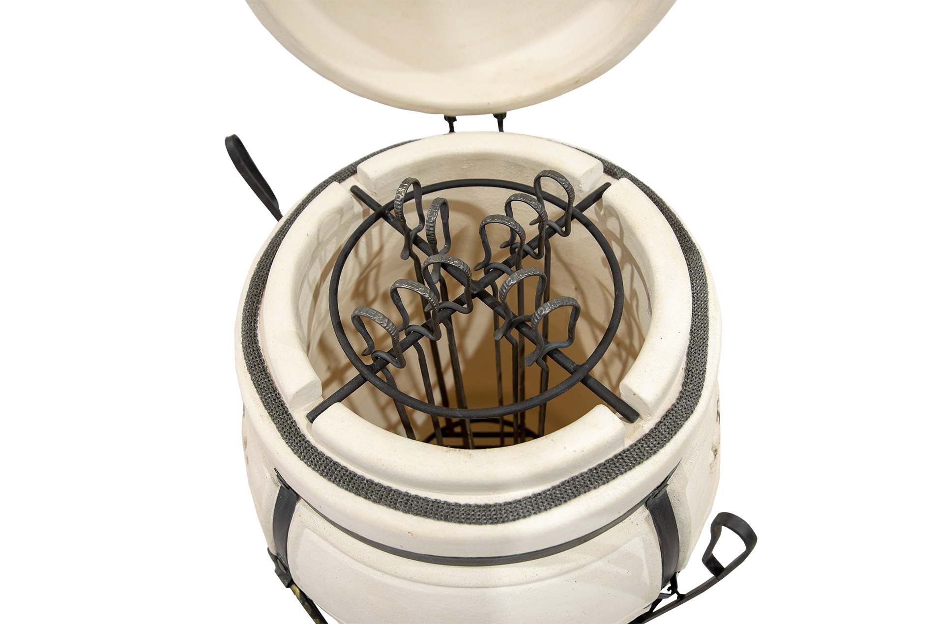 - Вместимость до 10 шампуров: Просторный внутренний объём позволяет разместить до 10 шампуров одновременно. Это делает тандыр Казачий отличным выбором для приготовления больших порций мяса, овощей, рыбы, или выпечки.