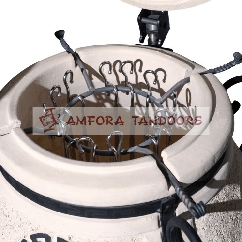 12 шампуров, кочерга, совок, приспособление для подвешивания шампуров, подставка кованая под тандыр, термометр |