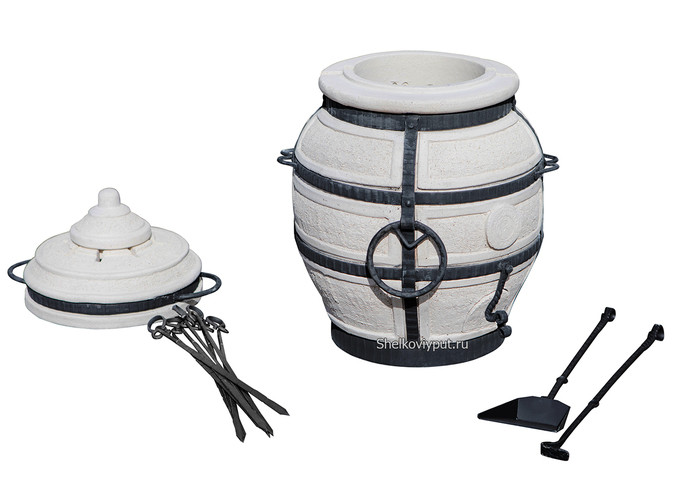 тандыр в сборе (1 шт.), шампуры (8 шт.), кочерга (1 шт.), совок (1 шт.) |