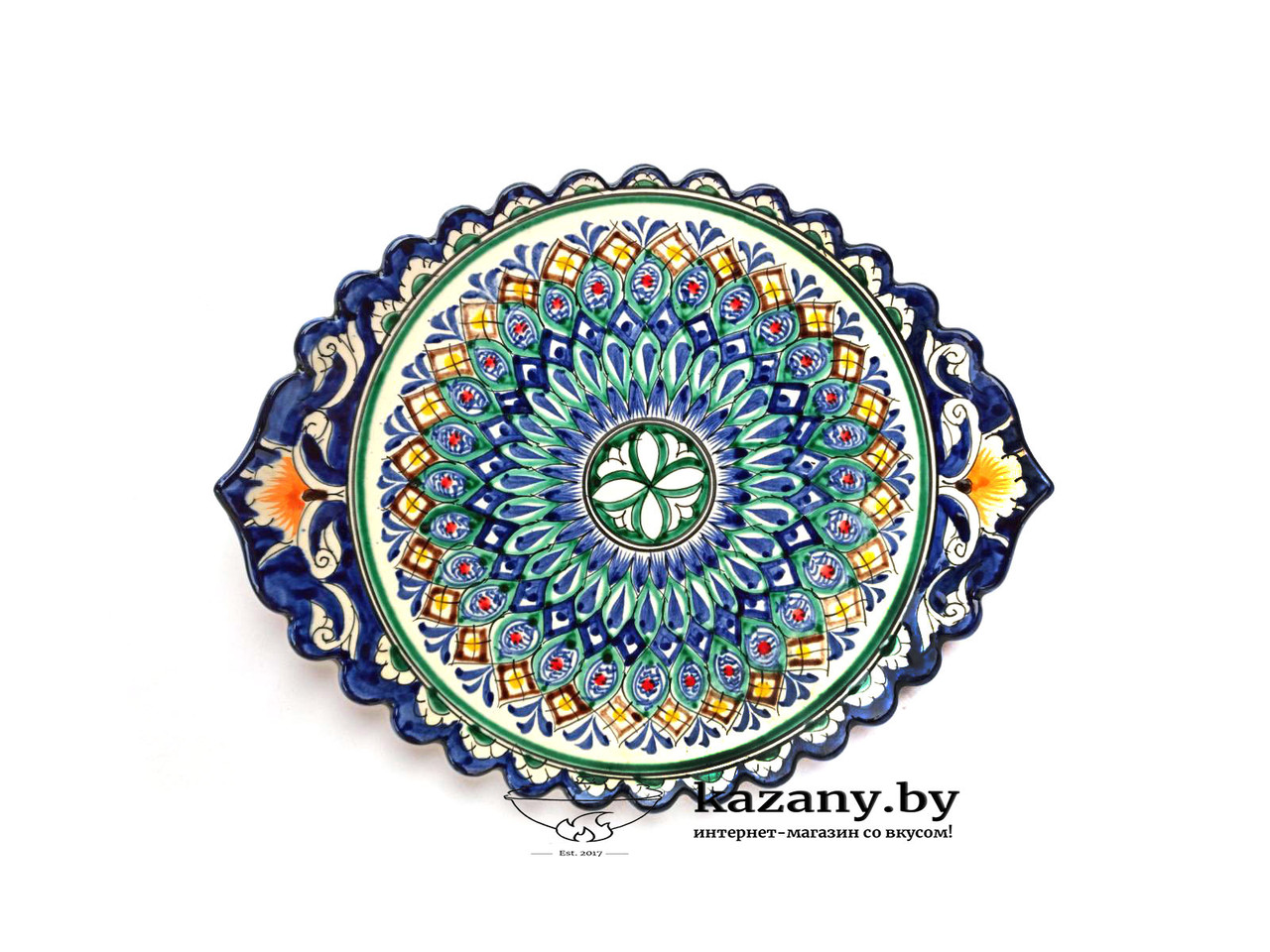 Блюдо для шашлыка малое длиной 32см серии "Риштан" из одноименного города на востоке Узбекистана, в Ферганской долине.